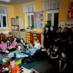 Po návratu do školy jsme si pustili strašidelnou pohádku, zachumlali se do spacáků a nakonec (alespoň většina z nás 😄) usnuli.