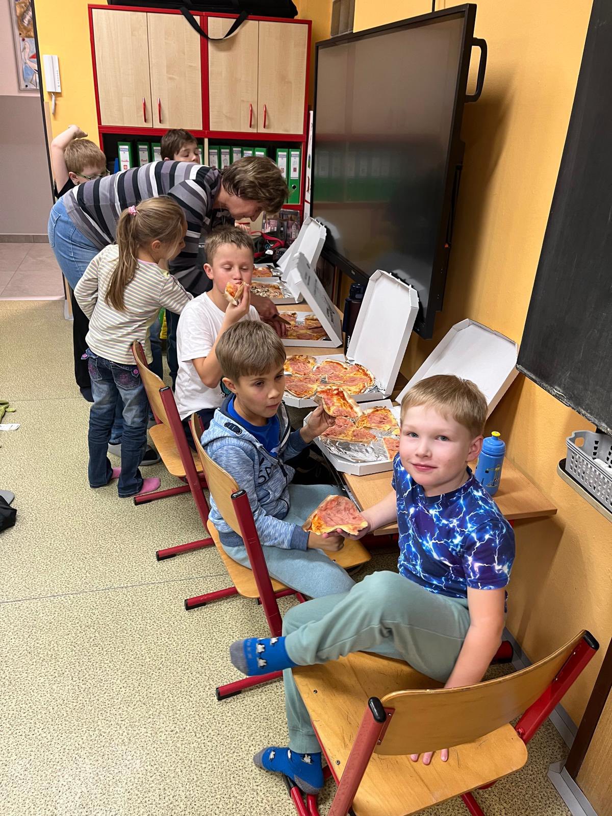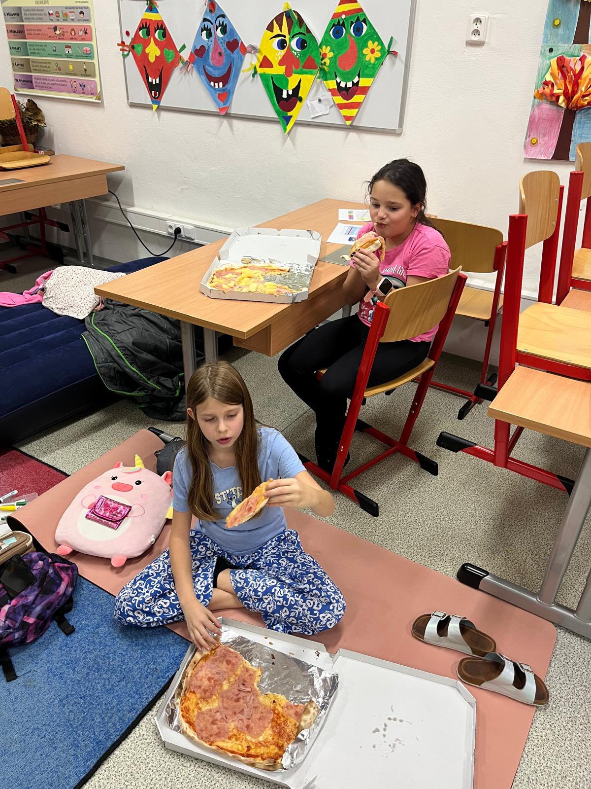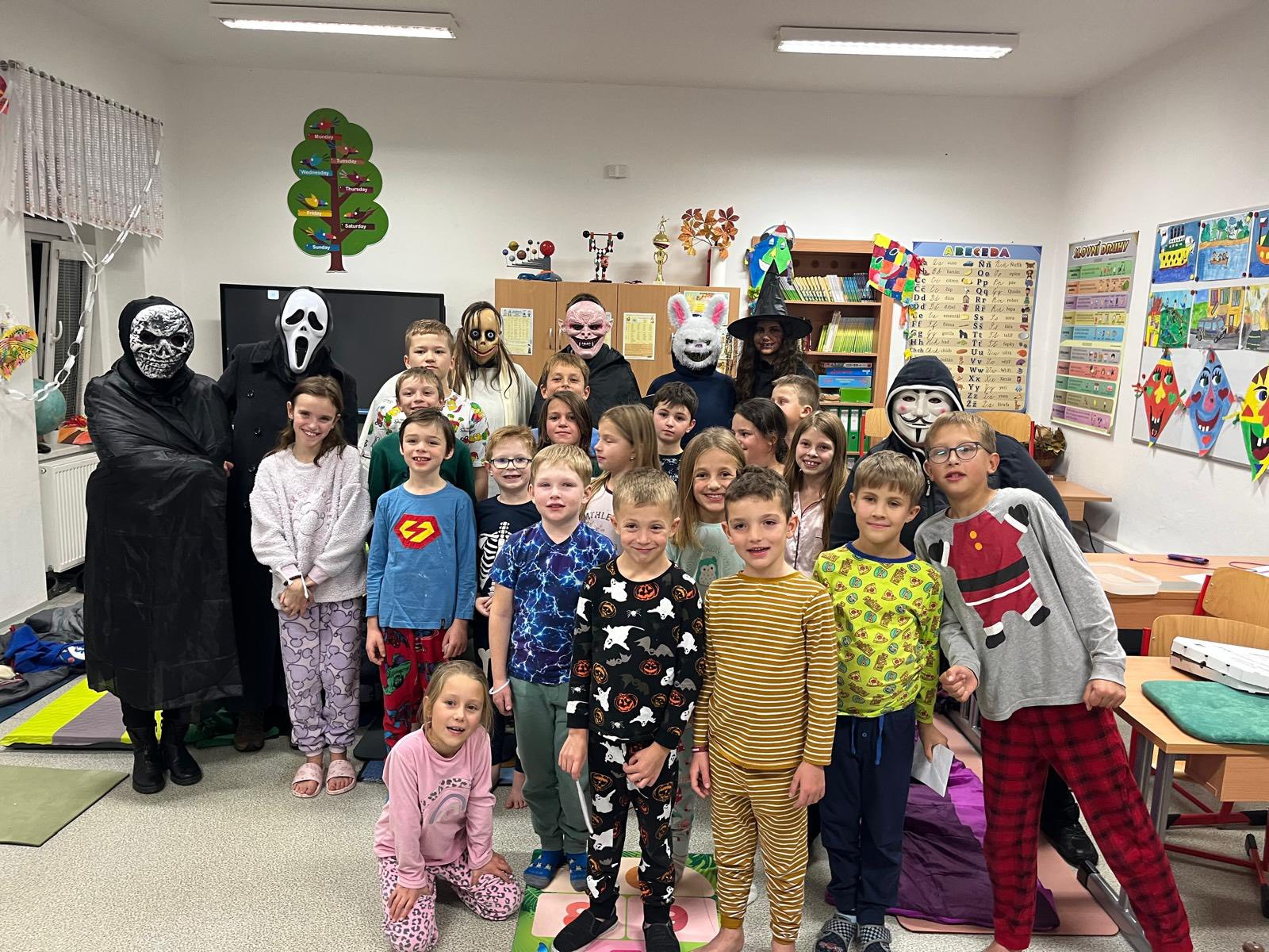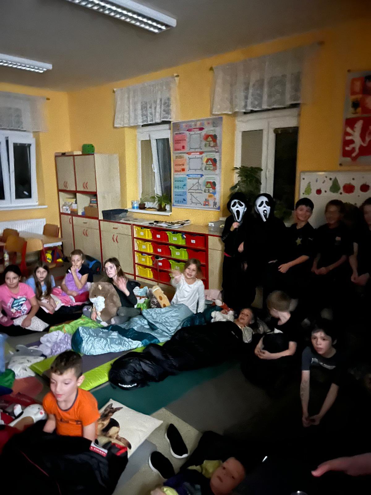 Po návratu do školy jsme si pustili strašidelnou pohádku, zachumlali se do spacáků a nakonec (alespoň většina z nás 😄) usnuli.