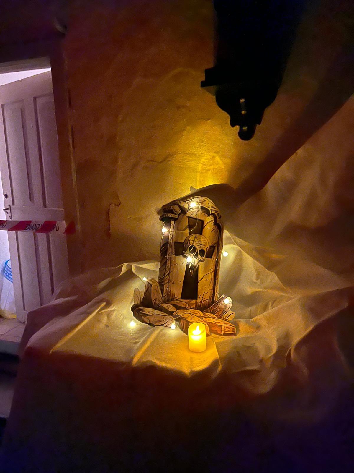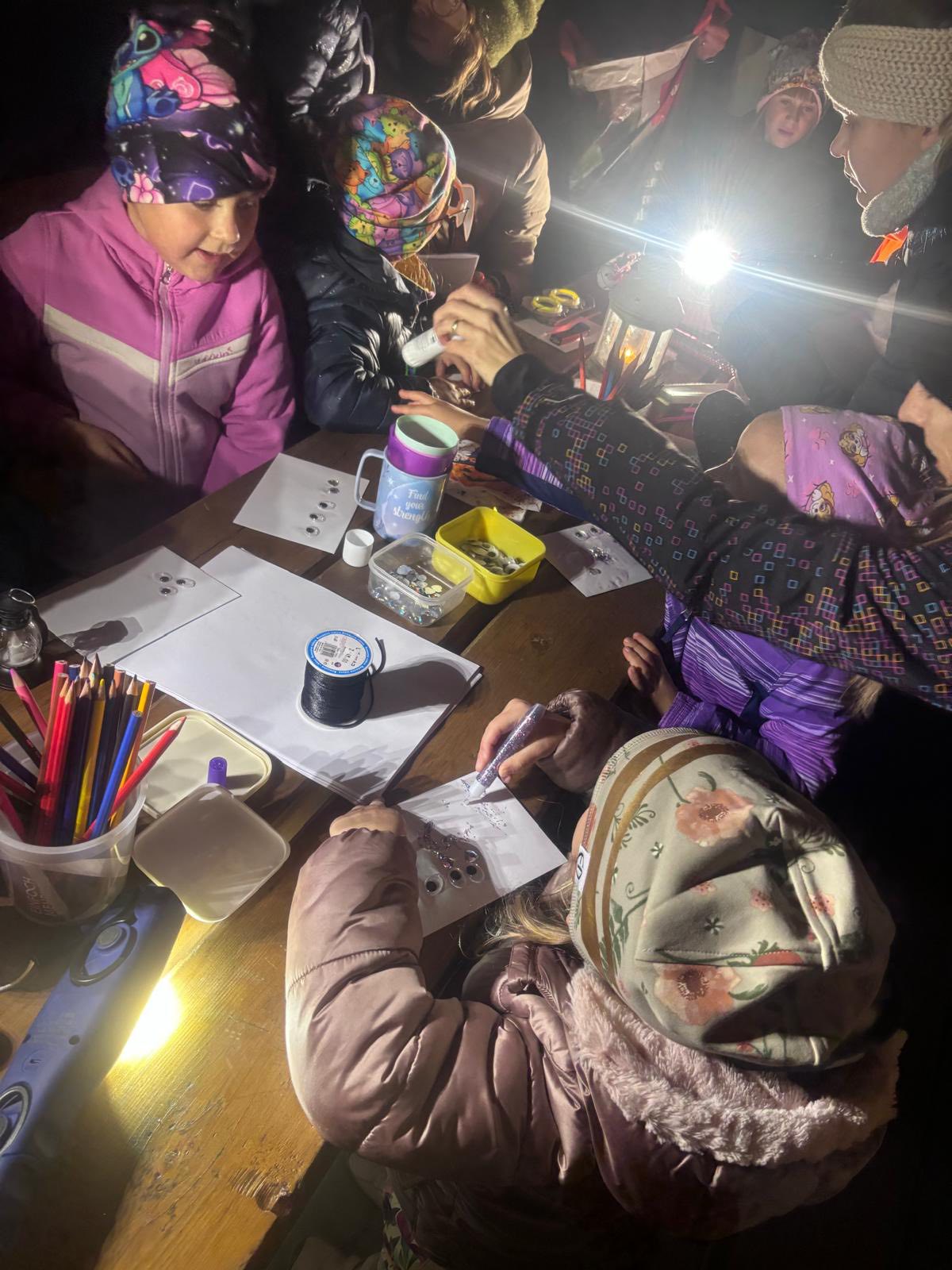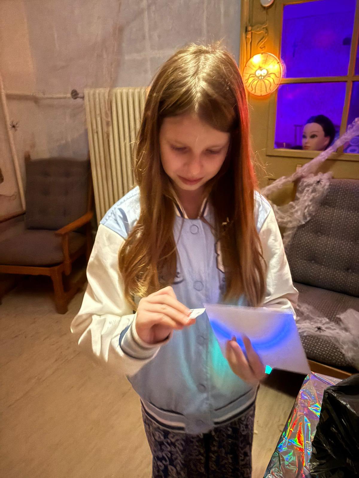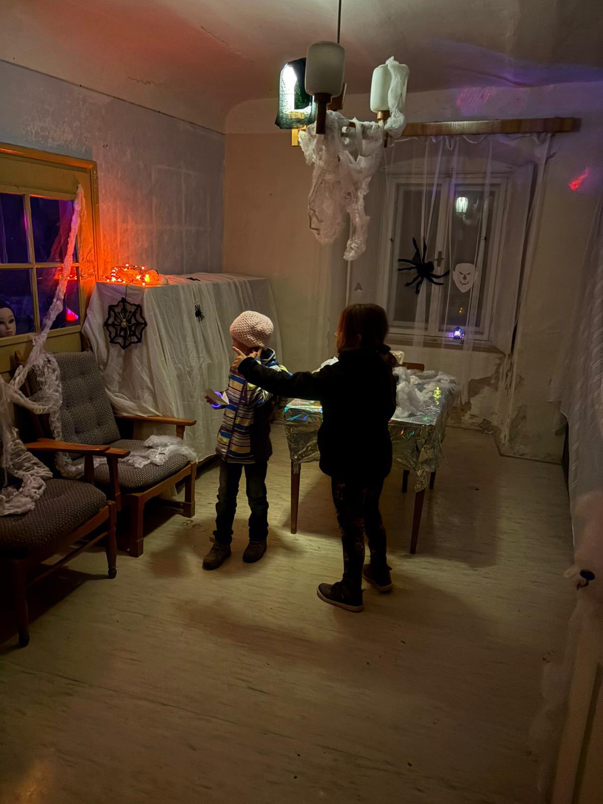 Děti si nejdřív pochutnaly na pizze, vyrobily si náramek odvahy a pak se po setmění vydaly na strašidelnou stezku na potemnělou faru a kolem hřbitova. Cestou potkaly duchy, děsivého králíka, upíra a u čarodějnice v lese si dokonce uvařily kouzelný lektvar! 🍵✨