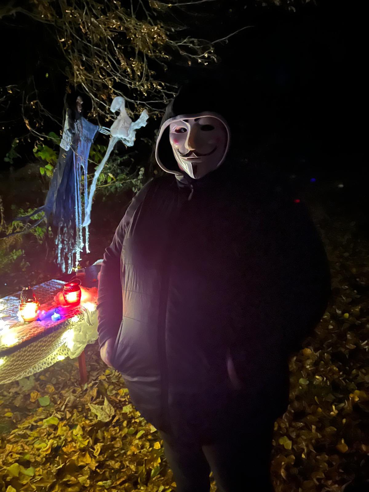Nezalekly se ani tajemné masky Anonymous, která je (jen trošku 😉) postrašila.