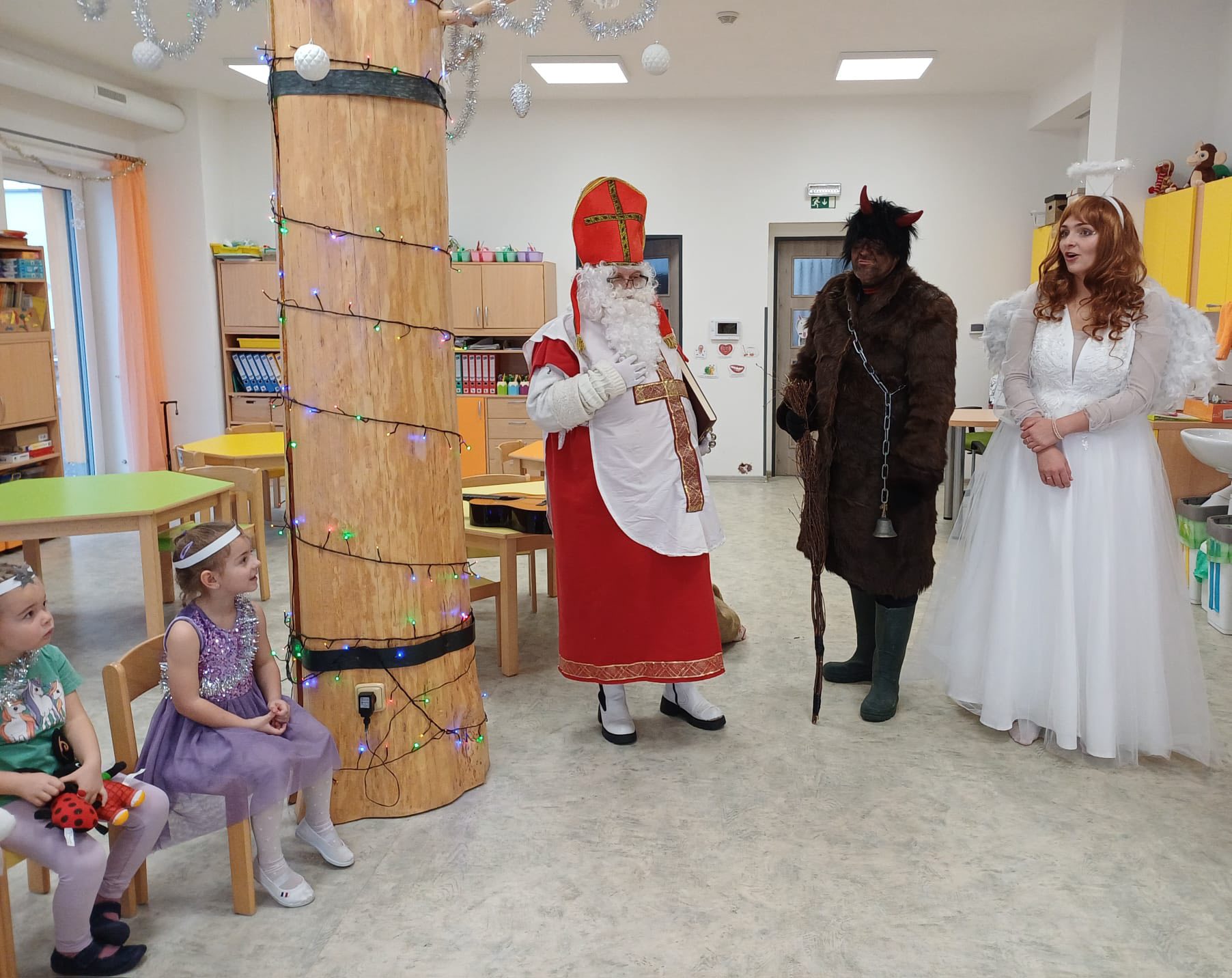 Na návštěvu dorazil Mikuláš se svým andělským i čertovským doprovodem a společně vykouzlili dětem úsměv na tváři (a občas i trochu napětí 😇😈).