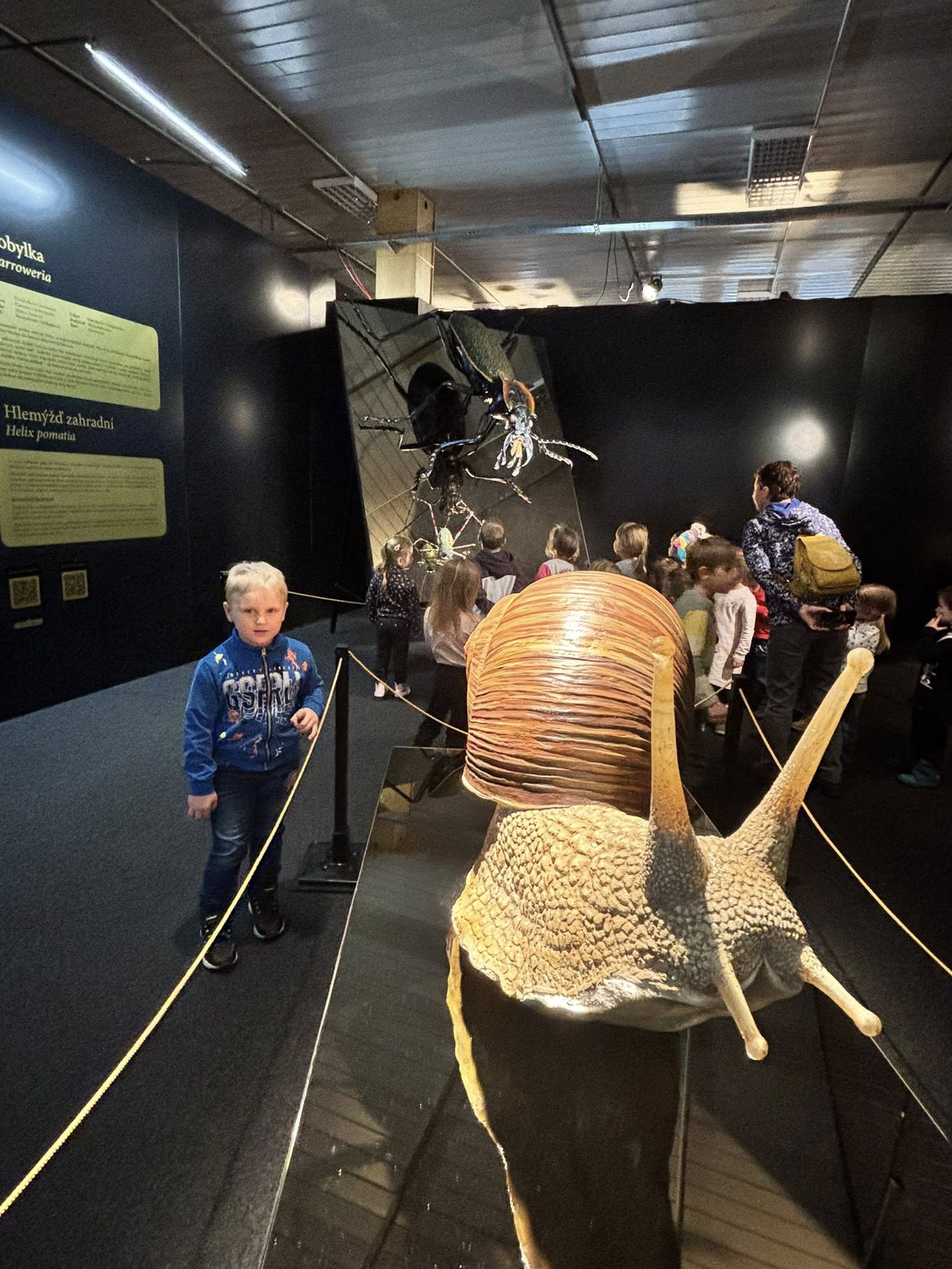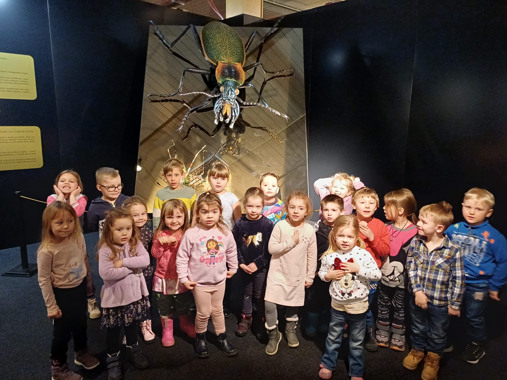 Čekal na nás svět obřího hmyzu, kde jsme si mohli zblízka prohlédnout detaily, kterých si v přírodě jen tak nevšimneme. Děti s nadšením prozkoumávaly nejrůznější druhy hmyzu, obdivovaly jejich křídla, tykadla i složené oči a objevovaly, jak jsou tito malí tvorové vlastně fascinující.